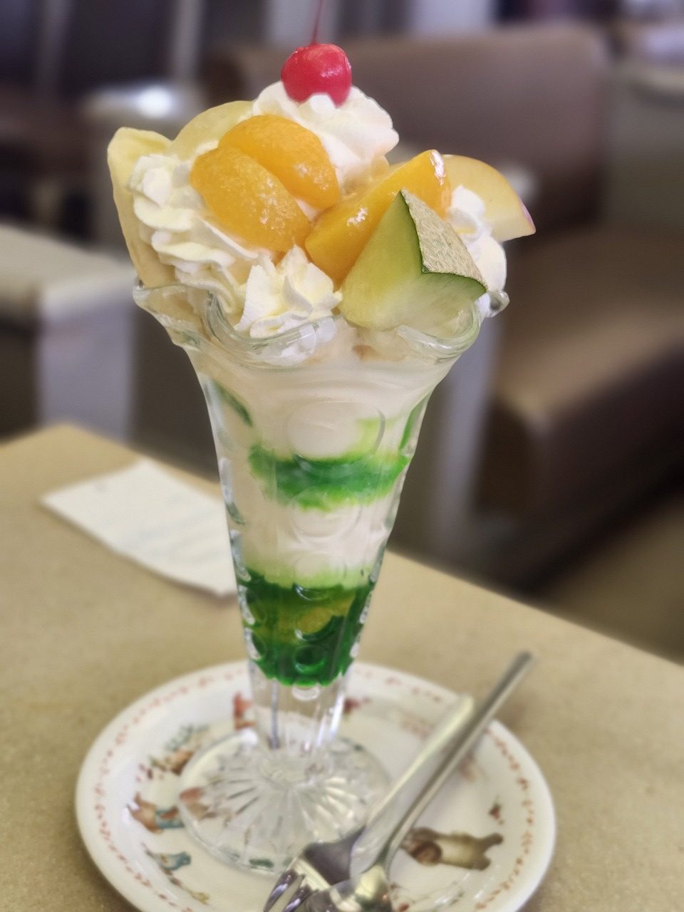 店内を見渡すとこれまた、昭和を戦い抜いた方々が多いのですが、たまに若い子が来て頼んだパフェの写真を撮っていました。世代を問わずテンションの上がるパフェを今後もたまに食べに行こうと思います。