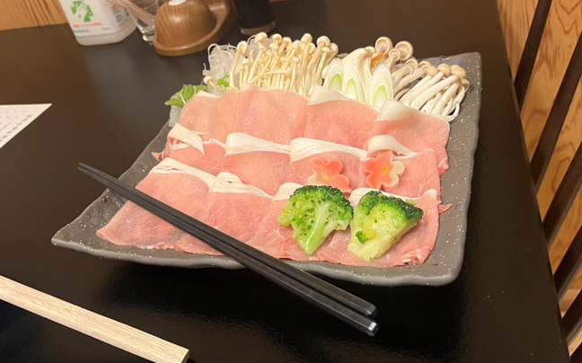 夜ご飯はしゃぶしゃぶで、どれも美味しくおなかいっぱい!
